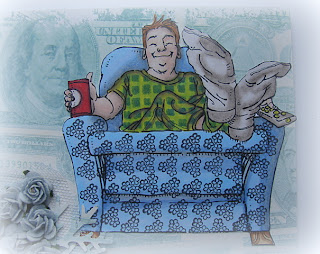 Witam zakochałam się w tych stempelkach są rewelacyjne ...na pierwszy ogień poszedł gościu he he nie ma to jak spocząć na kanapie nogi do góry i obejrzeć sobie mecz ;) z puszką he he